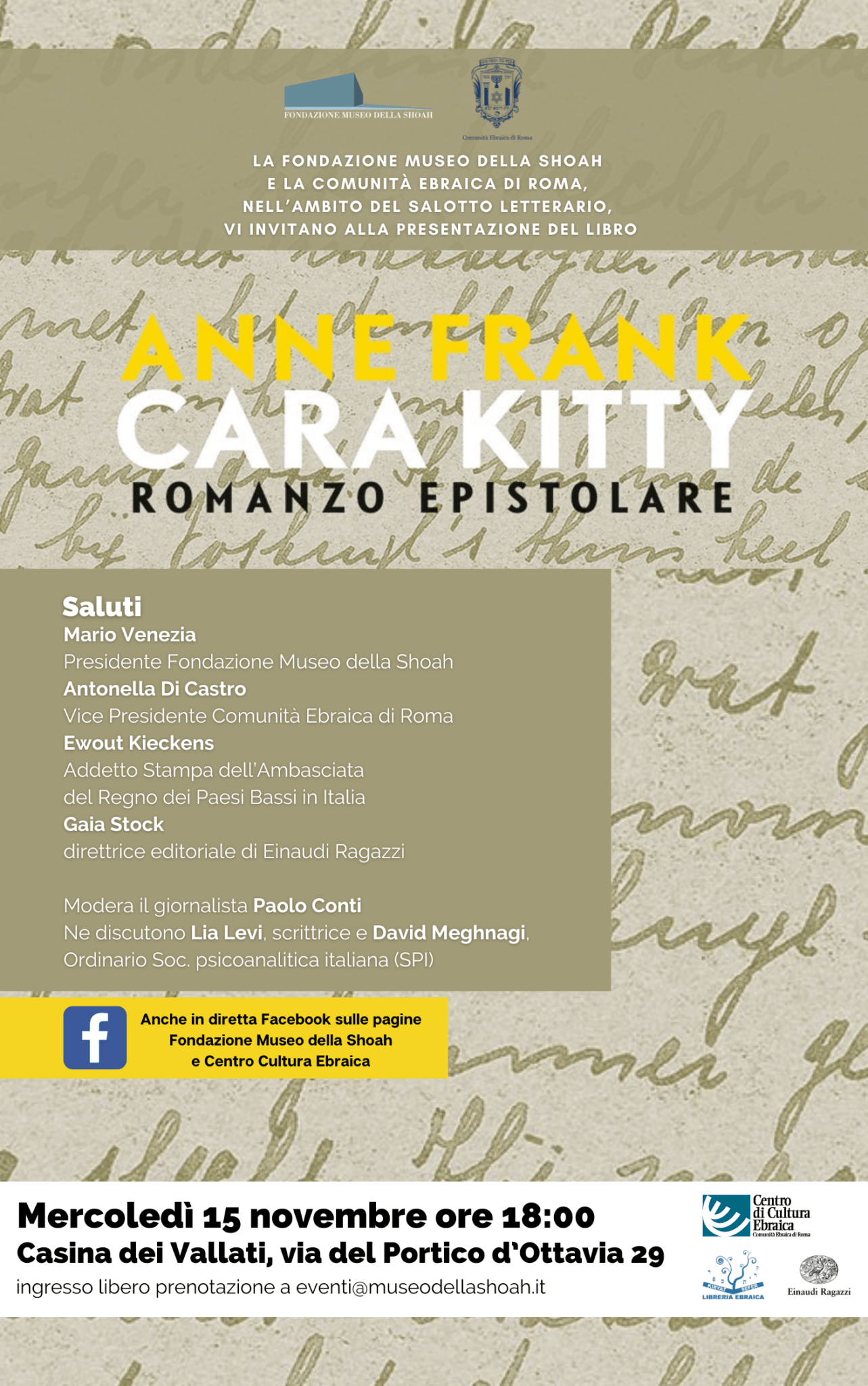 Cara Kitty con Lia Levi e David Meghnagi, modera Paolo Conti.