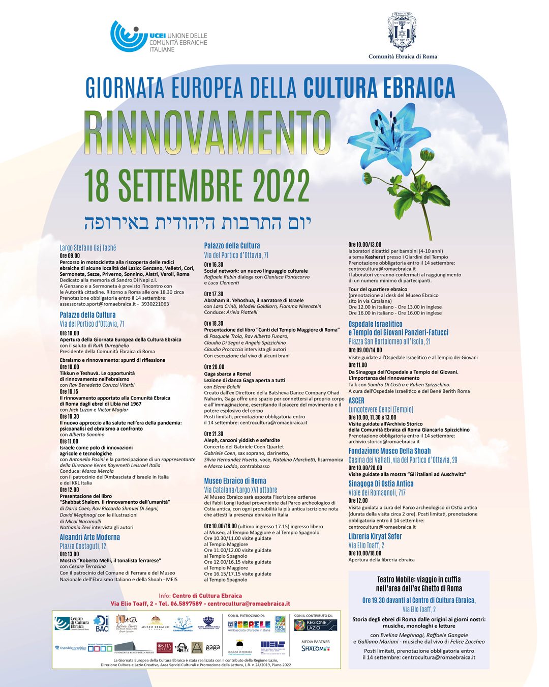 La Giornata Europea della Cultura Ebraica è stata realizzata con il contributo della Regione Lazio, Direzione Cultura e Lazio Creativo, Area Servizi Culturali e Promozione della Lettura, L.R. n.24/2019, Piano 2022