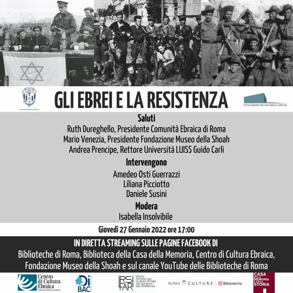 In occasione del Giorno della Memoria 2022 “GLI EBREI E LA RESISTENZA”