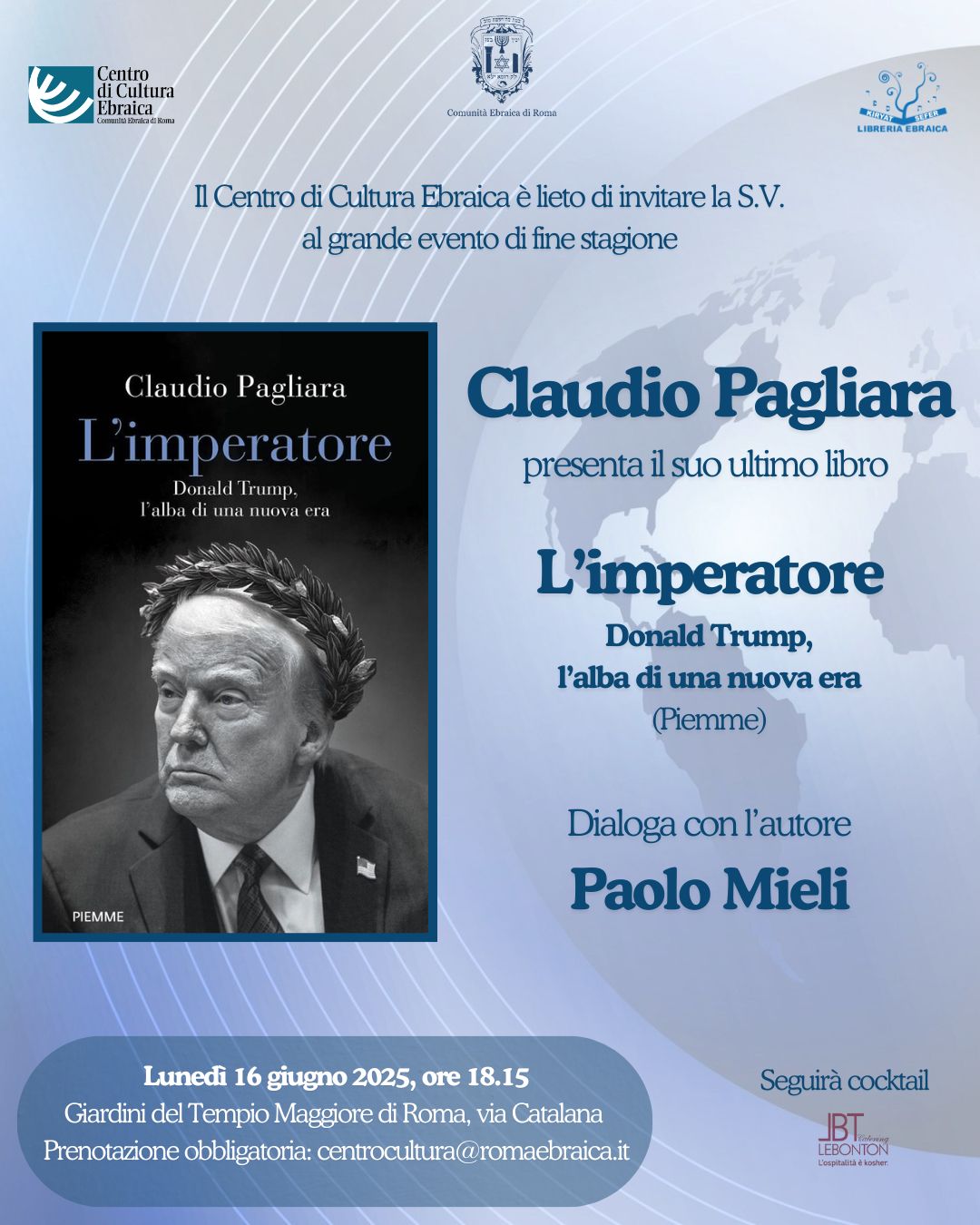 Prenotazione obbligatoria: centrocultura@romaebraica.it
