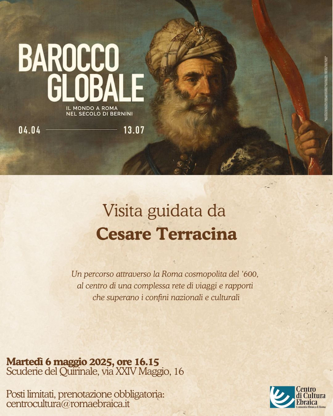 Posti limitati, prenotazione obbligatoria: centrocultura@romaebraica.it